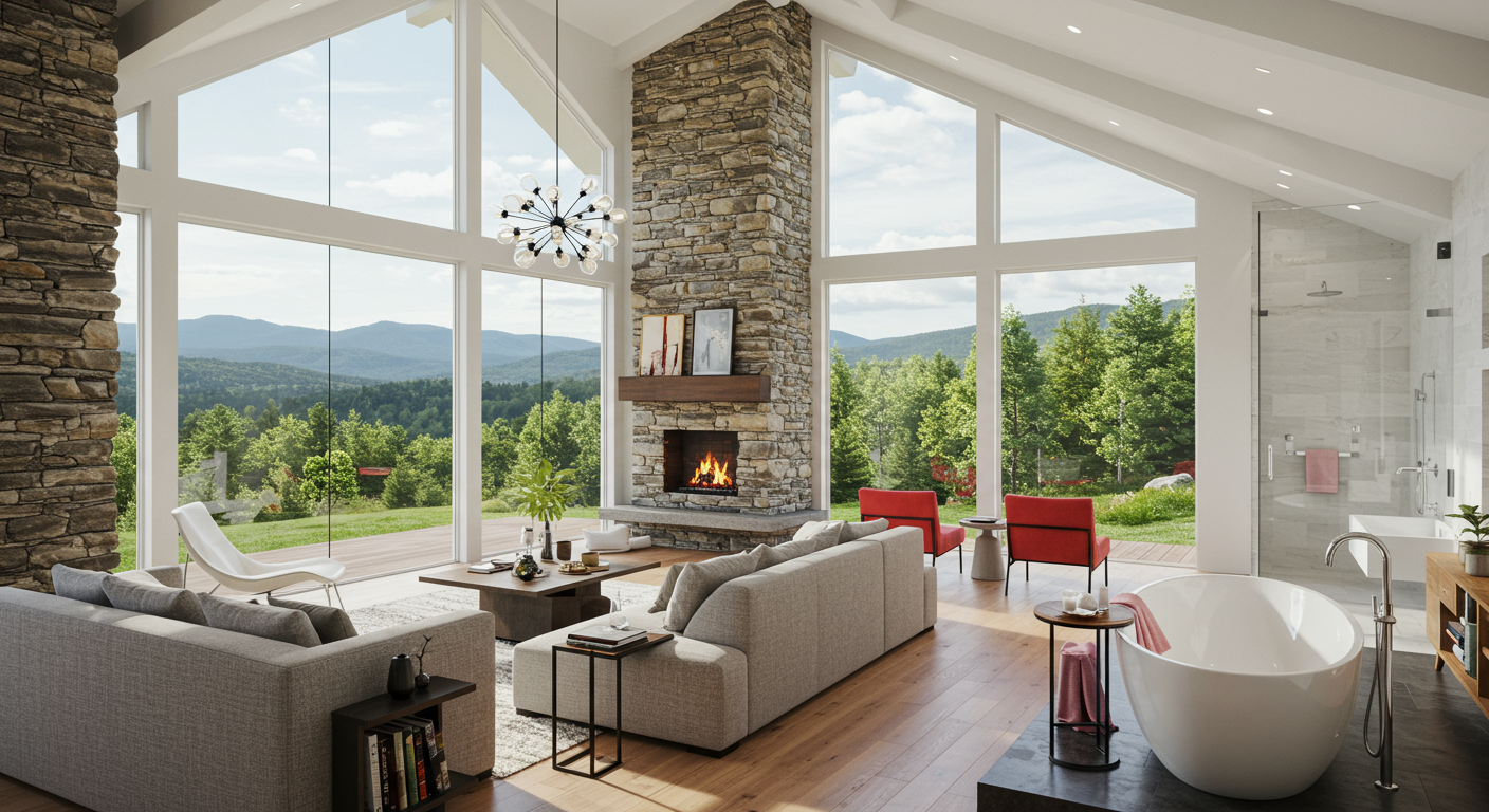 Perched on the mountainside and situated just 150 yards from the Adams Avenue ski trail with easy ski-in access, this meticulously designed home has been recently upgraded throughout, with each room cleverly crafted to take full advantage of the fabulous far-reaching views.